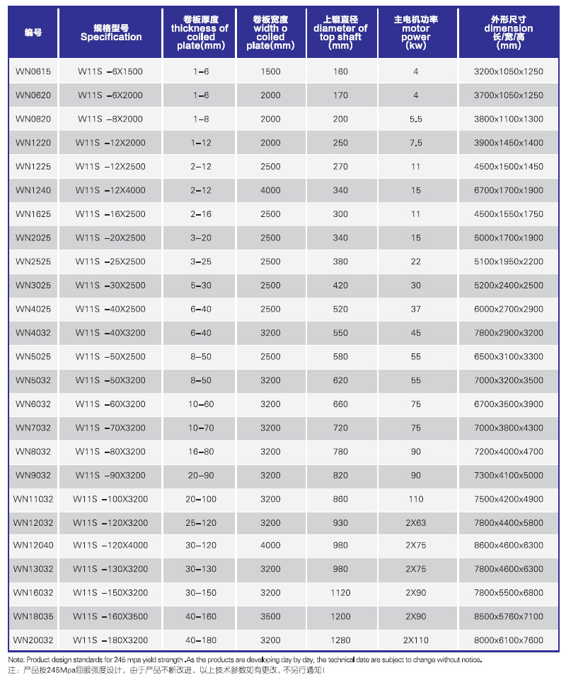 上輥萬能式卷板機,引進日本技術生產,上輥可以垂直升降也可以水平方向移動。采用上輥直接加壓方式,可以控制板材剩余直邊的長度和形狀。可以卷制多段弧形、方形、圓形、錐形、等工件。